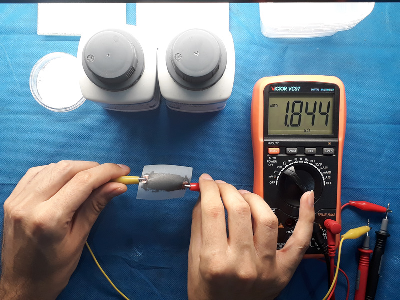 Nowadays using conductive inks and pastes consumption has risen to a great extent. Wearables generally need conductive paths on flexible polymers can be likened to copper on fiber glass sheets (FR4) to build up an electrical circuit. Use of fine grain or nano metal inks like Ag or Ni solve the problem but they are generally pricey and cannot be used by everyone. In this experience I use graphite powder to make some pastes. Their grain size is not in order of nano materials so they are not good candidate for nano ink. Anyway they can be used as ‘conductive paste’ or something along those lines.