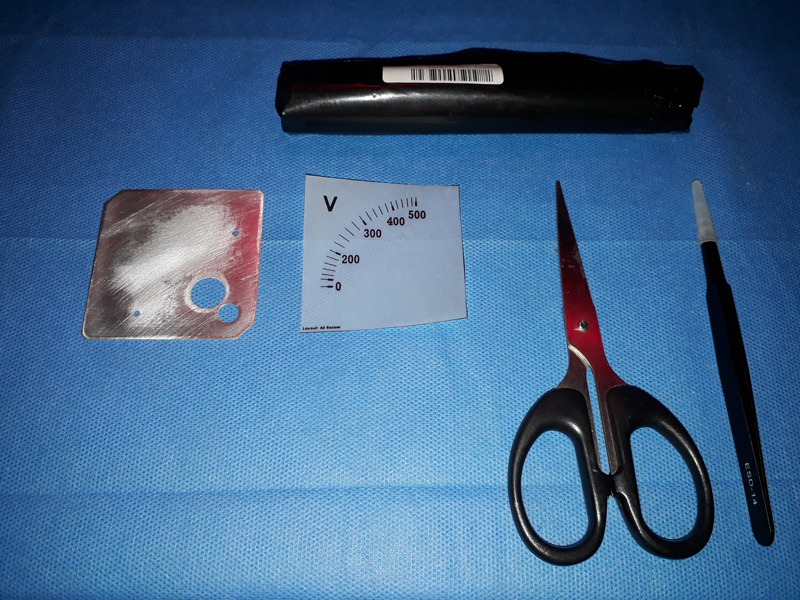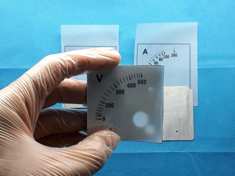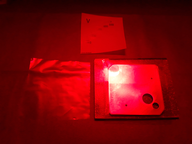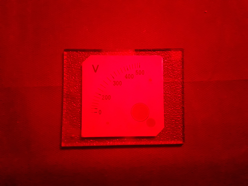 The panel is now ready to mount on voltmeter. The laminate after exposure seems purple and removed pattern denotes the pristine aluminum color.
